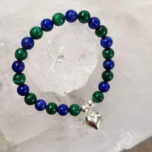 Sterling Silver Love Heart Bracelet with Lapis Lazuli and Malachite Combination